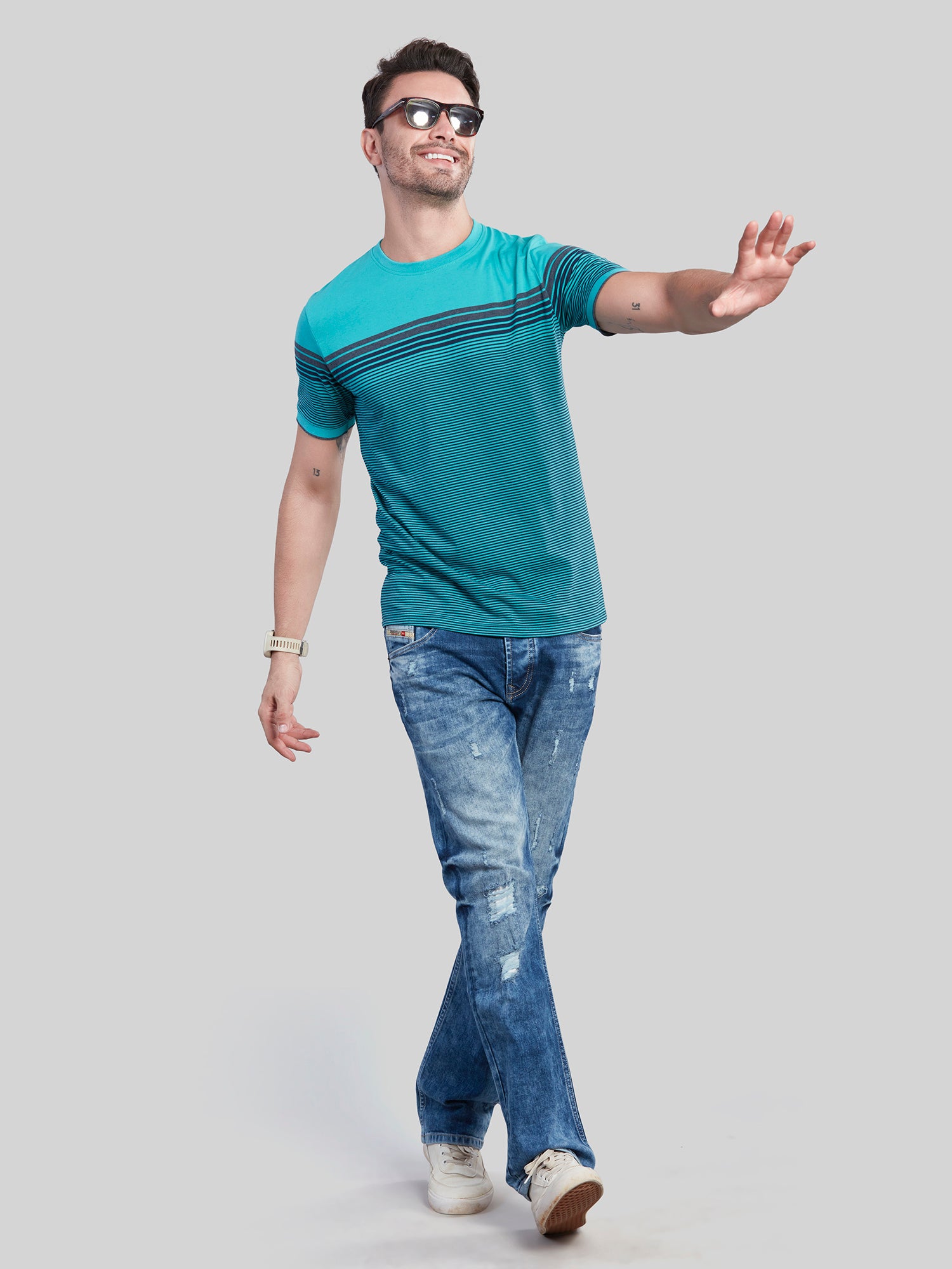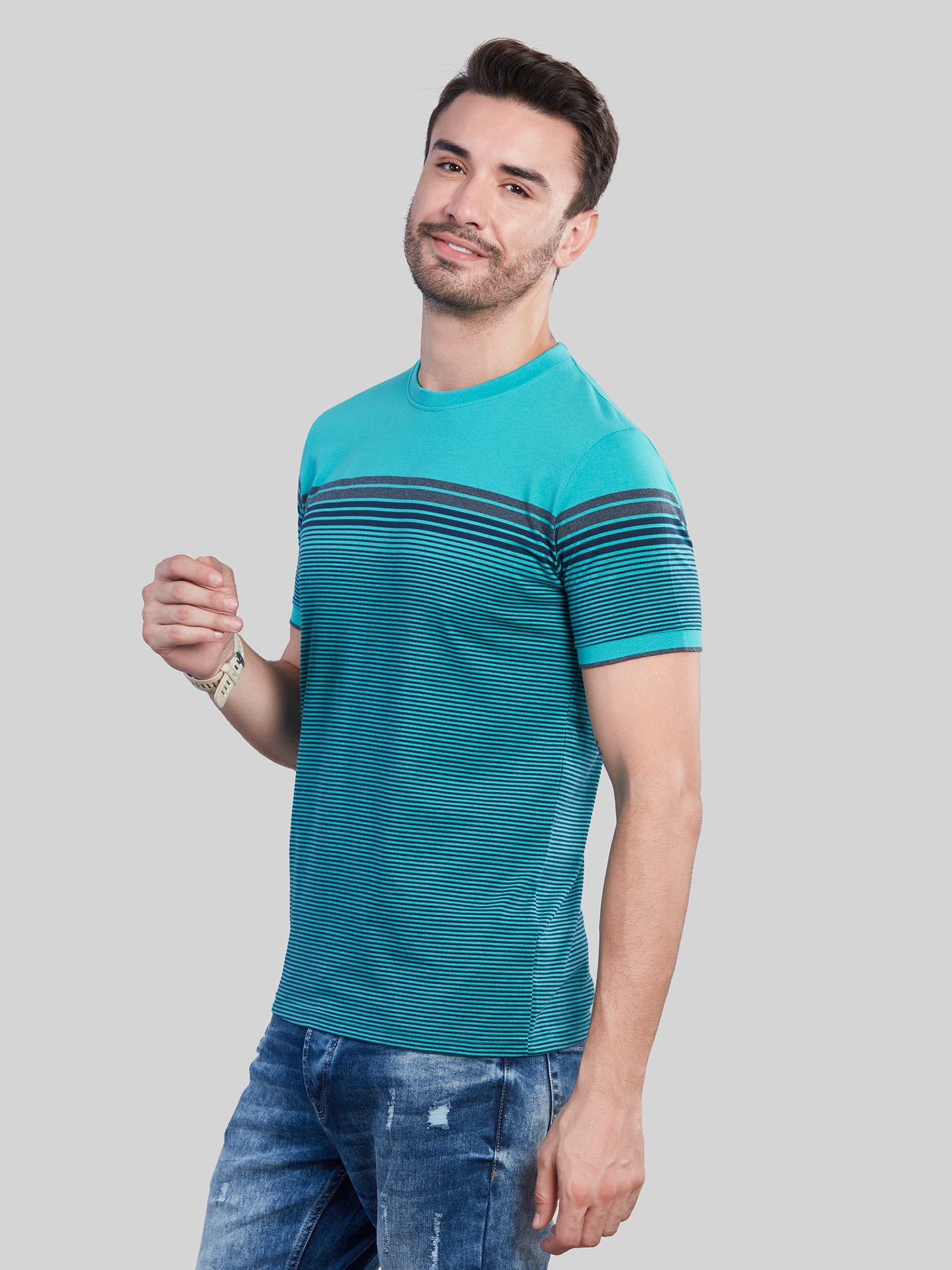 - Green Striped T-Shirt for Men